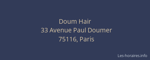 Voici les horaires de Doum Hair situé à Paris 16ème,