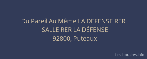 Voici les horaires de Du Pareil Au Même LA DEFENSE RER situé à Puteaux,