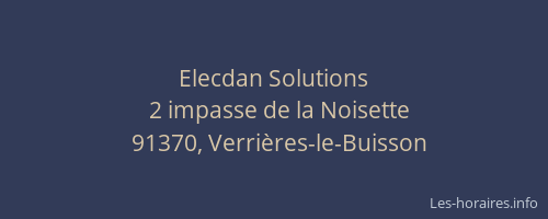 Voici les horaires de Elecdan Solutions situé à Verrières-le-Buisson,