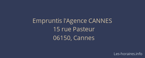 Voici les horaires de Empruntis l'Agence CANNES situé à Cannes,