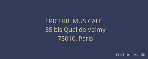 Voici les horaires de EPICERIE MUSICALE situé à Paris 10ème,