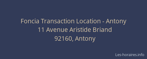 Voici les horaires de Foncia Transaction Location - situé à Antony,