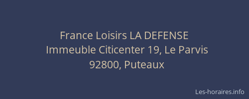 Voici les horaires de France Loisirs LA DEFENSE situé à Puteaux,