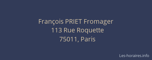 Voici les horaires de François PRIET Fromager situé à Paris 11ème,