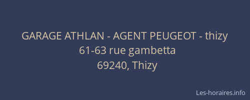 Voici les horaires de GARAGE ATHLAN - AGENT PEUGEOT - thizy situé à Thizy,
