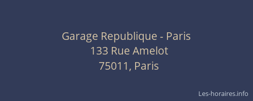 Voici les horaires de Garage Republique - situé à Paris 11ème,