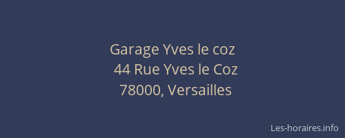 Voici les horaires de Garage Yves le coz situé à Versailles,