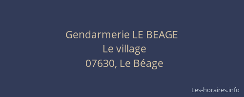Voici les horaires de Gendarmerie LE BEAGE situé à Le Béage,