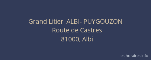 Voici les horaires de Grand Litier ALBI- PUYGOUZON situé à Albi,