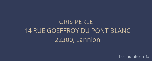 Voici les horaires de GRIS PERLE situé à Lannion,