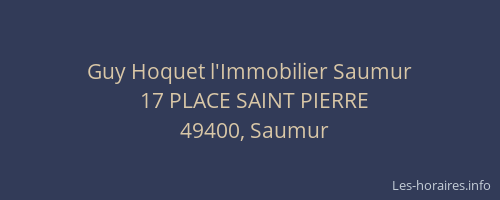 Voici les horaires de Guy Hoquet l'Immobilier situé à Saumur,