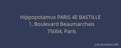 Voici les horaires de Hippopotamus PARIS 4E BASTILLE situé à Paris,