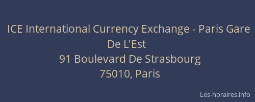 Voici les horaires de ICE International Currency Exchange - Gare De L'Est situé à Paris,