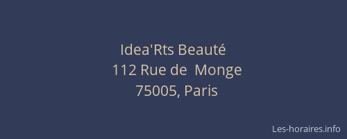 Voici les horaires de Idea'Rts Beauté situé à Paris 5ème,