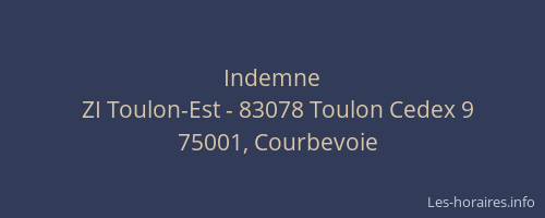 comme sa localisation à ZI Toulon-Est - 83078 Toulon Cedex 9,