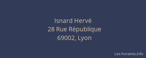 Vous pouvez renseigner les horaires Isnard Hervé situé à Lyon 2ème,