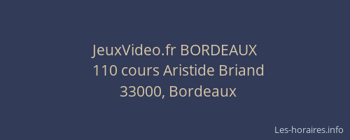 Voici les horaires de JeuxVideo.fr BORDEAUX situé à Bordeaux,
