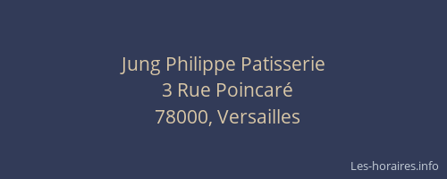 Voici les horaires de Jung Philippe Patisserie situé à Versailles,