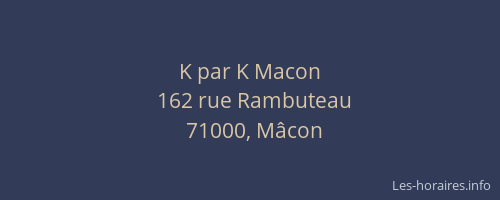 Vous pouvez renseigner les horaires K par K Macon situé à Mâcon,