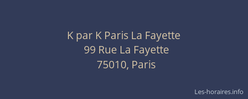 Vous pouvez renseigner les horaires K par K La Fayette situé à Paris,