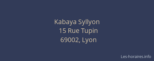 Voici les horaires de Kabaya Syllyon situé à Lyon 2ème,