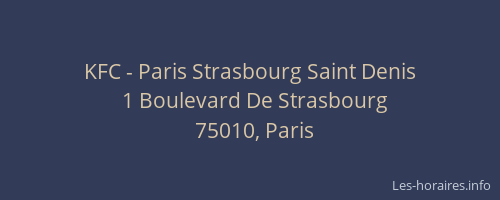Voici les horaires de KFC - Strasbourg Saint Denis situé à Paris,