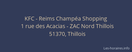 Voici les horaires de KFC - Reims Champéa Shopping situé à Thillois,