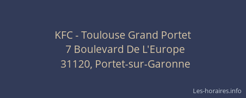 Voici les horaires de KFC - Toulouse Grand Portet situé à Portet-sur-Garonne,