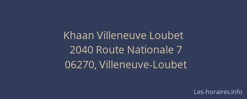 Voici les horaires de Khaan Villeneuve Loubet situé à Villeneuve-Loubet,