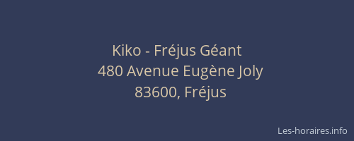 Voici les horaires de Kiko - Géant situé à Fréjus,
