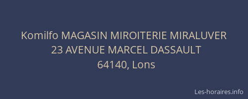 Voici les horaires de Komilfo MAGASIN MIROITERIE MIRALUVER situé à Lons,