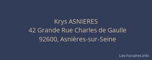 Voici les horaires de Krys ASNIERES situé à Asnières-sur-Seine,