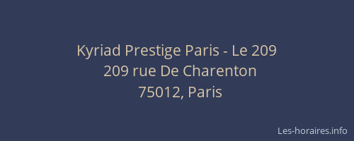 Vous pouvez renseigner les horaires Kyriad Prestige - Le 209 situé à Paris,