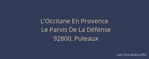 Voici les horaires de L'Occitane En Provence situé à Puteaux,