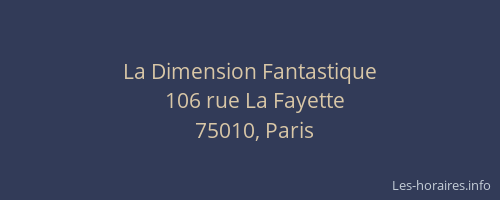 Vous pouvez renseigner les horaires La Dimension Fantastique situé à Paris 10ème,