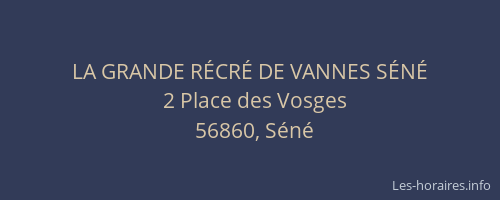 LA GRANDE RÉCRÉ DE VANNES SÉNÉ est fermé à cette adresse, 2 Place des Vosges .
