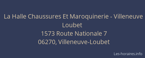Voici les horaires de La Halle Chaussures Et Maroquinerie - Villeneuve Loubet situé à Villeneuve-Loubet,