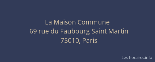 Vous pouvez renseigner les horaires La Maison Commune situé à Paris 10ème,