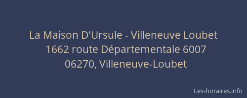 Voici les horaires de La Maison D'Ursule - Villeneuve Loubet situé à Villeneuve-Loubet,