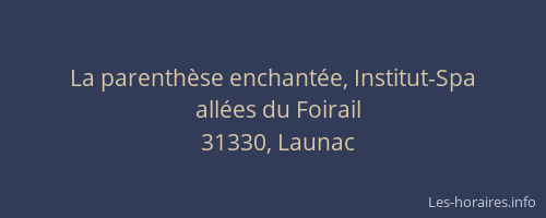 Voici les horaires de La parenthèse enchantée, Institut-Spa situé à Launac,