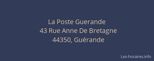 Voici les horaires de La Poste Guerande situé à Guérande,