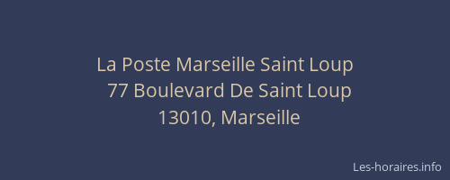 Voici les horaires de La Poste Saint Loup situé à Marseille,