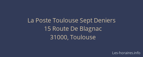Voici les horaires de La Poste Sept Deniers situé à Toulouse,