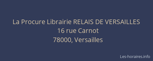 Voici les horaires de La Procure Librairie RELAIS DE VERSAILLES situé à Versailles,