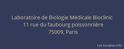 Voici les horaires de Laboratoire de Biologie Médicale Bioclinic situé à Paris 9ème,