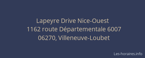Voici les horaires de Lapeyre Drive Nice-Ouest situé à Villeneuve-Loubet,