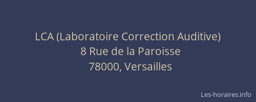 Voici les horaires de LCA (Laboratoire Correction Auditive) situé à Versailles,