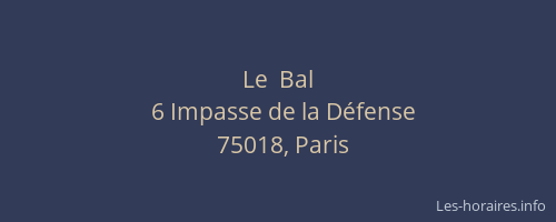 Voici les horaires de Le Bal situé à Paris 18ème,