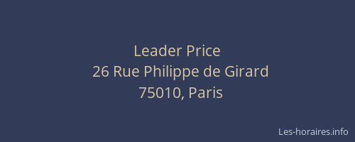 Voici les horaires de Leader Price situé à Paris 10ème,