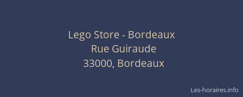 Vous pouvez renseigner les horaires Lego Store - situé à Bordeaux,
